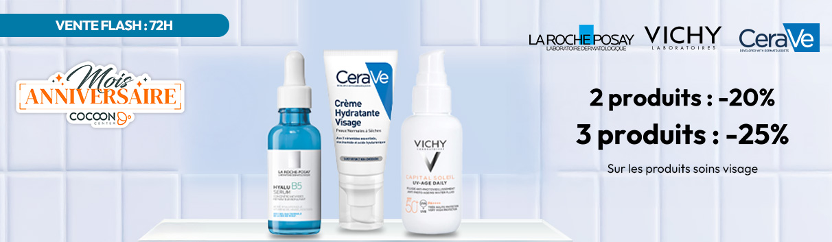 Quel que soit le produit recherché, vous le trouverez dans votre parapharmacie en ligne Cocooncenter. Par contre, nous ne vendons pas de médicaments. Uniquement des produits parapharmaceutiques tels que des : soins du visage (démaquillants, gommages, crèmes, ...), soins du corps (exfoliants, crèmes, soins raffermissants, …) ou encore soins des cheveux (shampoings, masques et autres produits traitants). Des soins spécifiques, pour tous les membres de la famille, notamment pour la peau fragile des bébés.