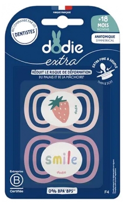 Dodie Extra 2 Sucettes Anatomiques Symmetrical + 18 Mois sont des sucettes pour les enfants de plus de 18 mois.