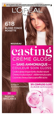 L'Oréal Paris Casting Crème Gloss Couleur Sans Ammoniaque 180 ml - Coloration : 618 Blond Foncé Noisette est la solution idéale pour celles et ceux qui souhaitent une couleur éclatante et naturelle.